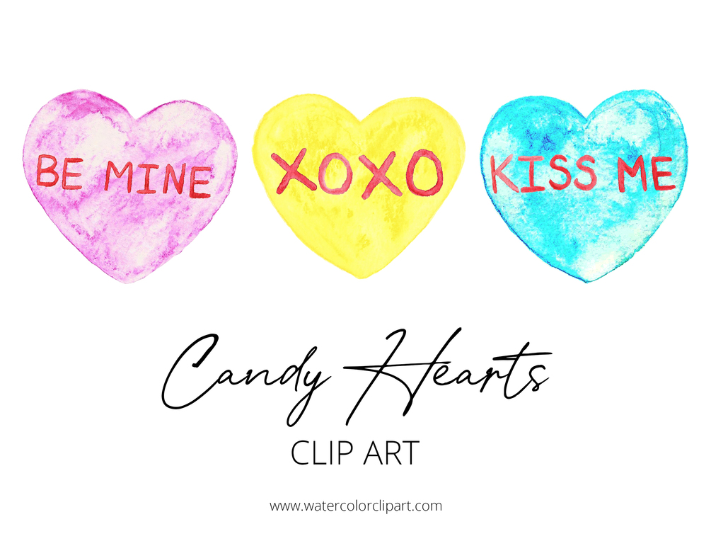 This listing is a digital download for THIRTY-EIGHT (38) hand painted Valentine's Day candy conversation hearts clip art. Each element is hand painted using a watercolor technique to create fun customizable conversation heart and love clip art images! These Valentine's Day clip art pieces are hand drawn in watercolor paint for a watercolor look for some adorably cute heart images that measure around 2.5 inches in height. Letters measure a little more than .5 inches in height and can be resized to fit.