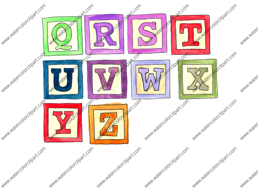 These wooden toy alphabet block clip art pieces are hand drawn in watercolor paint for a watercolor look for some cute images that measure around 3 inches in height. All images are available in a downloadable .zip folder. Colors vary per monitor and printer due to different color calibrations. Perfect color matching may not be exact.